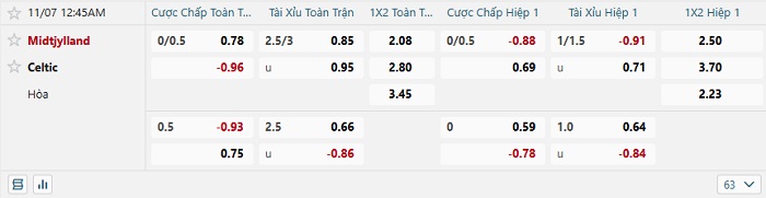 Tip kèo Châu Á hiệp 1 Midtjylland vs Celtic