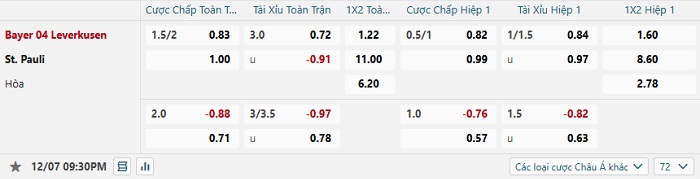 Tip kèo Châu Á hiệp 1 Leverkusen vs St. Pauli