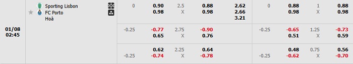 Tip kèo Châu Á full trận Sporting Lisbon vs Porto