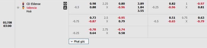 Tip kèo Châu Á full trận Eldense vs Valencia