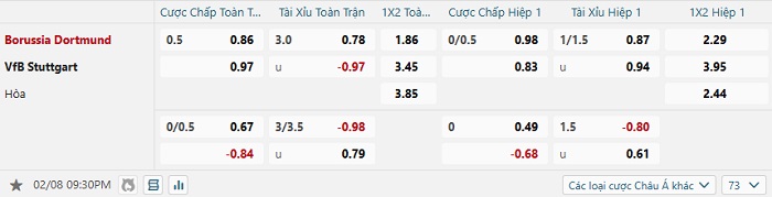 Tip kèo Châu Á full trận Dortmund vs Stuttgart