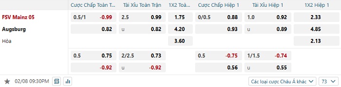 Tip kèo Châu Á hiệp 1 Mainz vs Augsburg