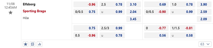 Tip kèo Châu Á hiệp 1 Elfsborg vs Braga