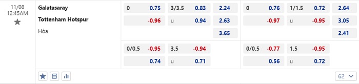 - Dự đoán tỷ số hiệp 1: Galatasaray 0 – 0 Tottenham