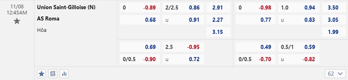 - Dự đoán tỷ số hiệp 1: Saint Gilloise 0 – 1 AS Roma
