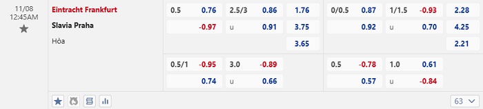 Tip kèo Châu Á full trận Frankfurt vs Slavia