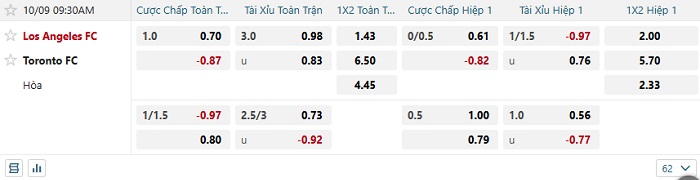 Tip kèo Châu Á hiệp 1 Los Angeles FC vs Toronto FC