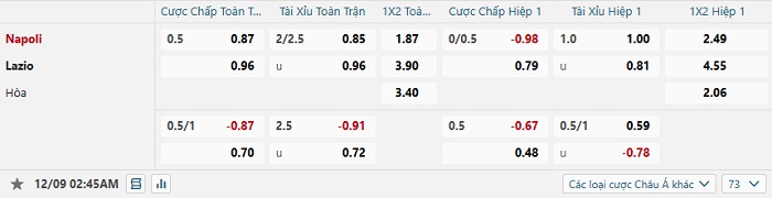 Tip kèo Châu Á full trận Napoli vs Lazio