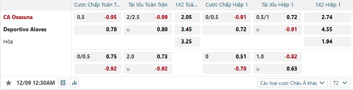 Tip kèo Châu Á full trận Osasuna vs Alaves