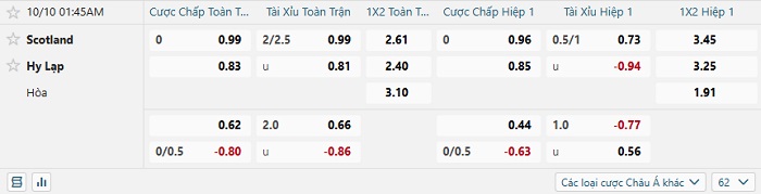 Tip kèo Châu Á full trận Scotland vs Hy Lạp