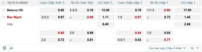 Tip kèo Châu Á full trận Belarus vs Đan Mạch