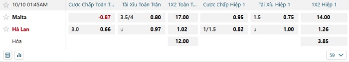 Tip kèo Châu Á full trận Malta vs Hà Lan