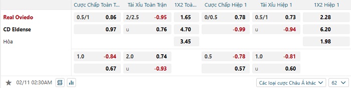 Tip kèo Châu Á hiệp 1 Real Oviedo vs Eldense