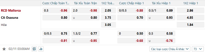 Tip kèo Châu Á hiệp 1 Mallorca vs Osasuna