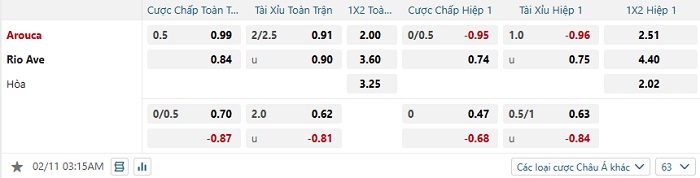 Tip kèo Châu Á hiệp 1 Arouca vs Rio Ave
