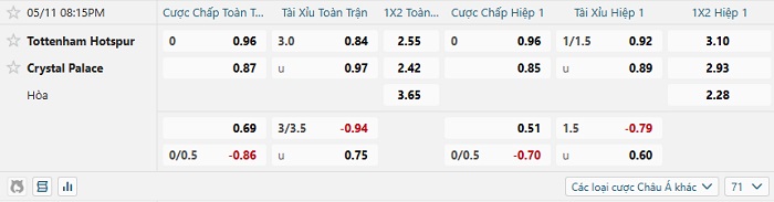 Tip kèo tỷ số Tottenham vs Crystal Palace