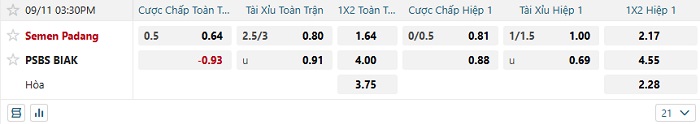 Tip kèo Châu Á hiệp 1 Semen Padang vs PSBS BIAK