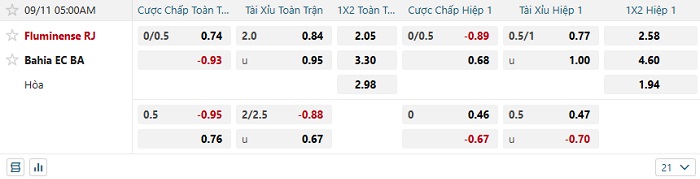 Tip kèo Châu Á hiệp 1 Fluminense vs Bahia
