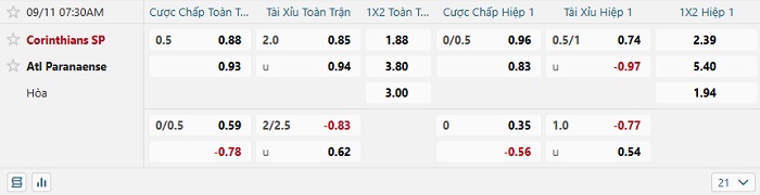Tip kèo Châu Á hiệp 1 Corinthians vs Paranaense
