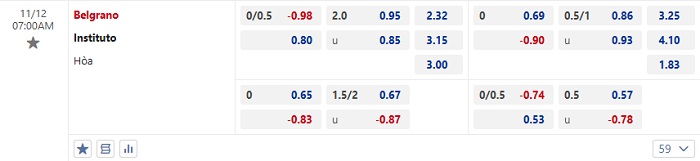 Tip kèo Châu Á hiệp 1 Belgrano vs Instituto