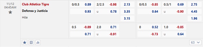 Tip kèo Châu Á hiệp 1 Atletico Tigre vs Justicia