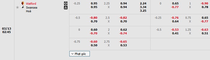 Tip kèo Châu Á hiệp 1 Watford vs Swansea