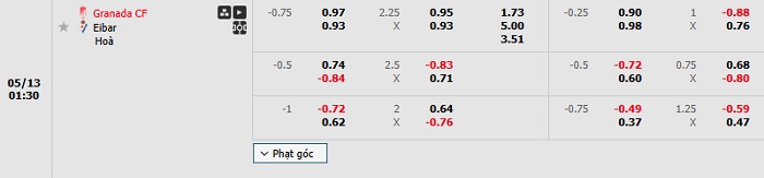 Tip kèo Châu Á hiệp 1 Granada vs Eibar