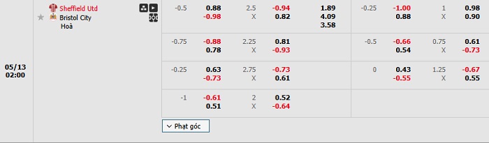 - Tip kèo cá cược Châu Á hiệp 1: Chọn Sheffield United -1/4