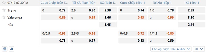 Tip kèo Châu Á full trận Bryne vs Valerenga
