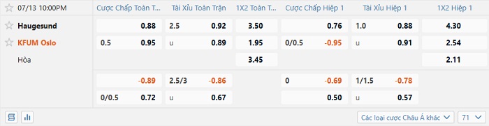 Tip kèo Châu Á full trận Haugesund vs Oslo