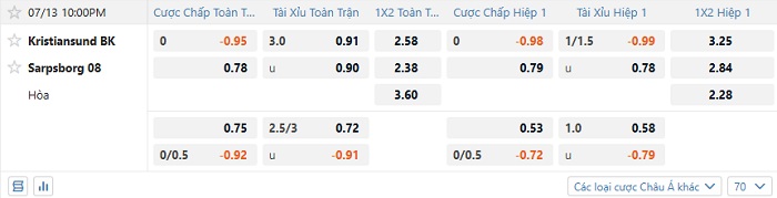 Tip kèo Châu Á full trận Kristiansund vs Sarpsborg