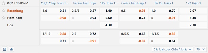 Tip kèo Châu Á hiệp 1 Rosenborg vs Ham Kam
