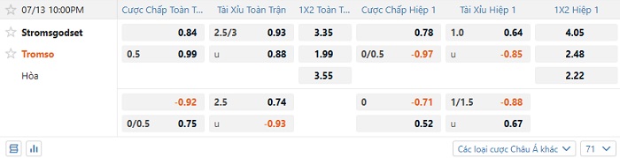- Tip kèo cá cược Châu Á hiệp 1: Chọn Tromso -1/4