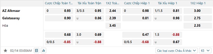 Tip kèo Châu Á full trận AZ Alkmaar vs Galatasaray