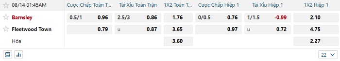 Tip kèo Châu Á full trận Barnsley vs Fleetwood