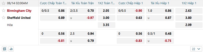 Tip kèo Châu Á full trận Birmingham vs Sheffield United