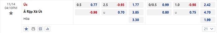 Tip kèo Châu Á full trận Úc vs Ả Rập Xê Út