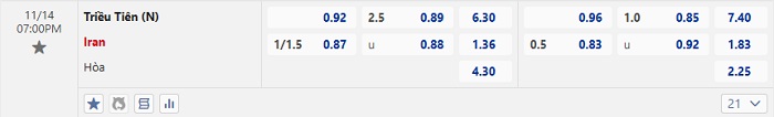 - Dự đoán tỷ số hiệp 1: Triều Tiên 0 – 1 Iran