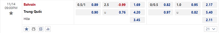 Tip kèo Châu Âu Bahrain vs Trung Quốc