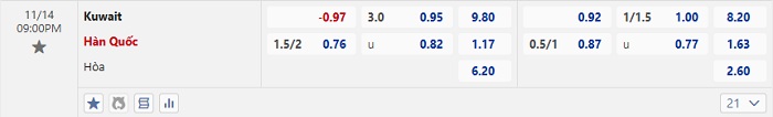 Tip kèo Châu Á full trận Kuwait vs Hàn Quốc