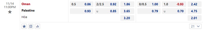 Tip kèo Châu Á hiệp 1 Oman vs Palestine