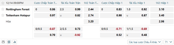Tip kèo Châu Á full trận Nottingham vs Tottenham