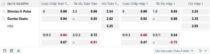 Tip kèo Châu Á hiệp 1 Shimizu S. Pulse vs Gamba Osaka