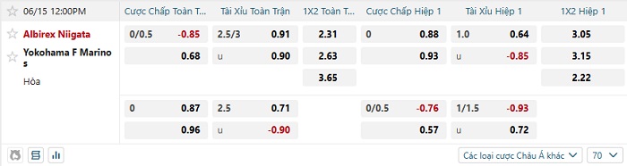 - Dự đoán tỷ số hiệp 1: Albirex Niigata 0 – 0 Yokohama F. Marinos