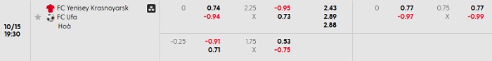 Tip kèo Châu Á hiệp 1 FC Yenisey vs FC Ufa