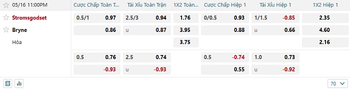 Tip kèo Châu Á full trận Stromsgodset vs Bryne