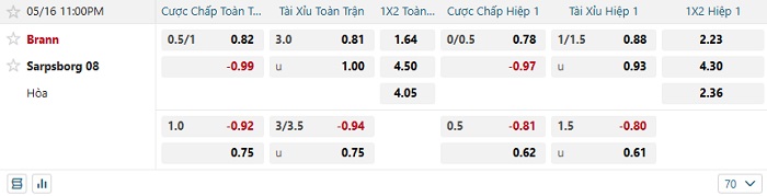 Tip kèo Châu Á hiệp 1 Brann vs Sarpsborg