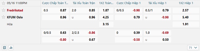 Tip kèo Châu Á hiệp 1 Fredrikstad vs KFUM Oslo