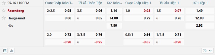 Tip kèo Châu Á hiệp 1 Rosenborg vs Haugesund
