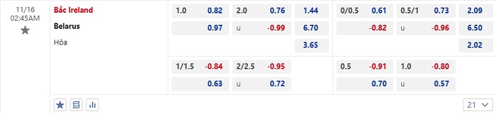 Tip kèo Châu Á full trận Bắc Ireland vs Belarus